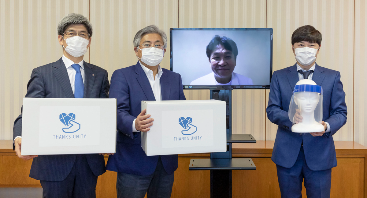 東京商工会議所北支部(会長=越野充博(越野建設株式会社 社長))は5月26日、城北信用金庫(理事長=大前孝太郎(北支部副会長))が主催する医療従事者支援プロジェクト「THANKS UNITY」を通じて、臨床現場でのウイルス感染防止用のフェイスシールド150個を北区PCR検査センターに寄贈しました。