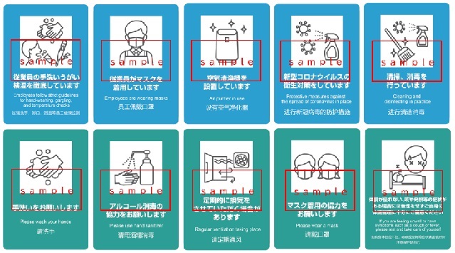 「事業者の取組み」や「お客様への協力依頼」等、感染予防策を講じていることを示す、注意喚起ピクトグラム(シール状)を希望者に配布します。