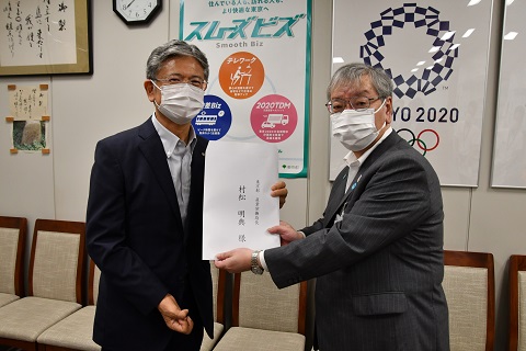 大久保副会頭・中小企業委員長は、7月15日、東京都の村松明典 産業労働局長を訪問し、7月13日の議員総会において決議した「東京都の中小企業対策に関する重点要望」を直接提出しました。