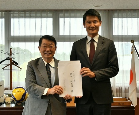 「国土交通省の防災・減災対策に関する要望」を朝日 健太郎・国土交通大臣政務官に手交しました