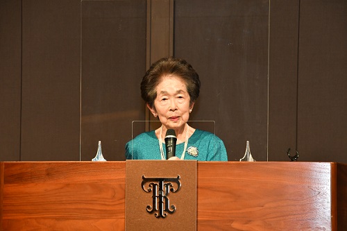 第1部では、エッセイストで渋沢翁の女孫でもある鮫島純子氏が、「祖父・渋沢栄一に学んだこと」と題した基調講演を行いました。鮫島氏は渋沢翁との思い出を振り返りながら、「祖父は国が豊かになって世界と対等に話しができ、みなが幸せになることを第一に考えていた」と述べました。