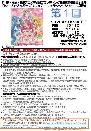 中野×杉並×豊島アニメ・マンガフェス2020in中野 「ヒーリングっど♥プリキュア キャラクターショー」公演中止のお知らせ