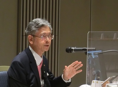 はじめに、東京都 産業労働局 商工部長 緑川武博 氏より、「東京都の令和3年度中小企業施策について」と題して卓話がありました。コロナのピンチをチャンスと捉えて、中小企業の取り組みを後押しする東京都の支援施策について説明がありました。