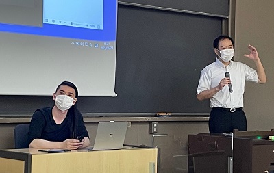 東京商工会議所 新事業・イノベーション創出委員会(委員長=垣内威彦・三菱商事社長)は6月23日、XR技術の社会実装と市場創造に挑戦している株式会社Synamon社長の武樋恒氏を講師にお招きし、明治大学で起業家セミナー(講義名「ベンチャービジネス論」)を開催しました。本セミナーは、学生に創業をより身近に感じてもらい、アントレプレナーシップを醸成することを目的として、同大学経営学部の岡田教授にご協力いただき開催したものです。今回は、新型コロナウイルス感染拡大防止のため、ハイブリッド形式での講演となりました。