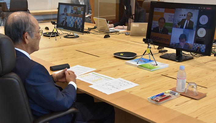 三村会頭から、テレワークデイズについては、東京2020大会期間中の人流抑制と混雑緩和を想定し、レジリエントな働き方の実現に向け、在宅勤務や、時差出勤、各種休暇取得などを推進する取り組みであると理解しており、本年も協力を呼び掛ける。