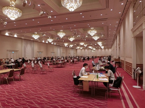 本面接会は今回で14回目。昨年はコロナの影響で開催を見合わせたが、今年は会員企業からの強い開催要請の声をうけて、従来の倍の広さの会場に飛沫防止パネルや消毒の準備はもちろん、企業側参加者も人数を絞ったうえで2班体制の前半・後半総入れ替え制とするなど、感染防止対策を講じて実施した。