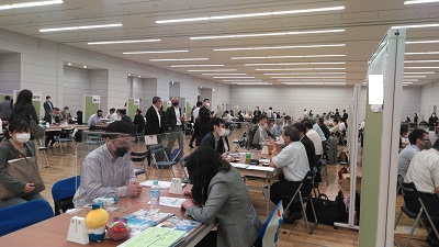 当日参加された企業の人事担当者からは「学校訪問もままならない中、この機会があって非常に良かった」、「入れ替え制での開催で、各大学と制限時間を守りつつもじっくりと話をすることができた」と感想が寄せられました。また、学校法人の就職支援担当者からは「久しぶりの対面での情報交換会は、貴重な機会だった」、「会場の感染症対策が万全であった」と感想が寄せられました。