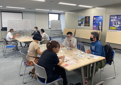 当日は、今回の参加テーマである「医療・介護・福祉」に関連する事業者さま7名にご参加いただき、自己紹介やグループ交流など、活発な情報交換が行われました。当日の参加者からは、「同じ業界でも他の職種の方とのお話しができて良かった」や「コロナ収束後も交流を行いたい」というお声をいただきました。