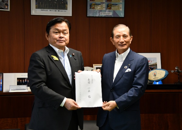 「東京及び首都圏の国際競争力強化に向けた都市政策等に関する要望」を赤羽国土交通大臣に手交しました