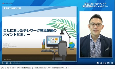 東京商工会議所(産業政策第二部)は、株式会社パソナ営業統括本部リンクワークスタイル推進統括、東京テレワーク推進センター統括責任者の湯田健一郎氏を講師に迎え、セミナー「自社に合ったテレワーク環境整備のポイント」をオンライン配信形式で開催し、8月27日までの期間内に29人の方が視聴しました。