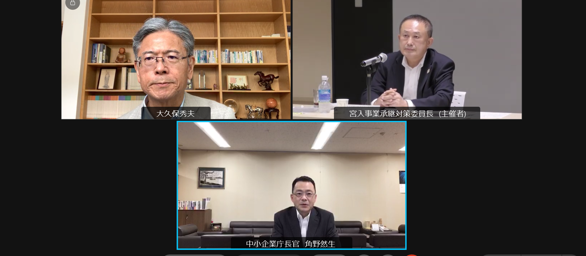 大久保副会頭・中小企業委員長は、7月28日、宮入事業承継対策委員長と合同で角野然生 中小企業庁長官とオンラインにて懇談し、7月6日に公表した「国の中小企業対策に関する重点要望」の早期実現を求めました。