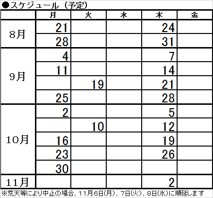 ● 日 程 平成29年8月21日(月)~11月2日(木) (全22回…下記スケジュール参照)
