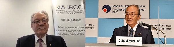 日豪経済委員会(委員長=三村明夫・東商・日商会頭)は10月5日、「第58回日豪経済合同委員会会議」を開催しました。例年は日豪の経済人や政府高官などが一堂に会し、両国間の貿易や経済関係などの意見交換を行うが、今回は豪州と日本とをオンラインでつないだハイブリッド形式で実施しました。