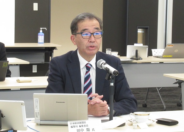 講師の日本経済新聞社 編集局 編集委員 田中 陽 氏から、「ポストコロナに向けた流通業界の対応」と題して、コロナ禍でダメージを受けた業界の動向と消費支出推移、年代別消費者像の変遷とコロナによる意識変化、ウィズコロナ・ポストコロナの業界別見通しなどについてご講演いただきました。