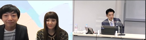 講師には、有限会社元祖鯱もなか本店(明治40年創業、名古屋の老舗菓子店)代表取締役 古田花恵氏ならびに専務取締役 古田憲司氏と、株式会社文明堂東京(明治33年創業、東京の老舗菓子店)代表取締役社長 宮崎進司氏をお招きし、オンラインにて名古屋と東京を繋いで実施いたしました。
