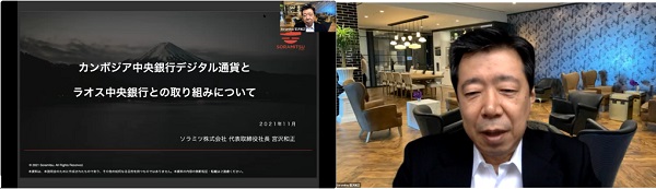 日本メコン地域経済委員会(委員長=鈴木善久・伊藤忠商事㈱取締役副会長)は、11月1日、ソラミツ株式会社代表取締役社長 宮沢和正氏を講師に迎え、世界的に開発が進んでいる中央銀行デジタル通貨に関する同社の取り組みについて、委員企業を対象にオンラインにてご講演いただき、45名が参加しました。