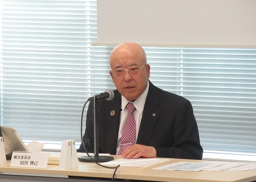 観光委員会(委員長=田川副会頭・株式会社JTB相談役)は、11月10日、第5回観光委員会をハイブリッド会議形式にて開催し、57名(会場出席39名、オンライン出席18名)が出席しました。