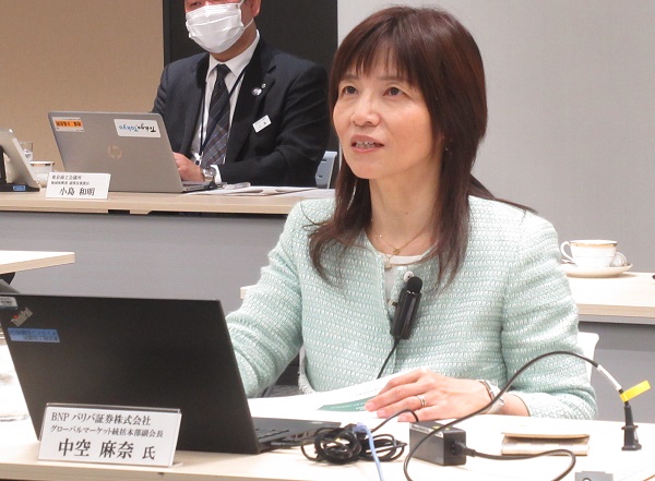 講師のBNPパリバ証券株式会社 グローバルマーケット統括本部副会長 中空 麻奈 氏から、「世界経済から読み解く日本経済のゆくえ」と題して、混迷を極めるウクライナ情勢を中心とした国内外における様々なリスク要因の分析、今後の世界経済やクレジット市場の見通しなどについてご講演いただきました。