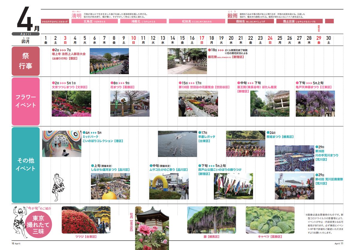 東京23区で3~5月におこなわれる、地域に密着したイベントや観光情報を掲載。