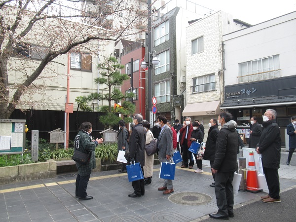 観光委員会(委員長=田川副会頭・株式会社JTB相談役)は、3月23日、東京の魅力再発見プロジェクト第2弾「東海道品川宿の義理人情と水辺を活かしたまちづくり」視察会を開催し、14名が参加しました。