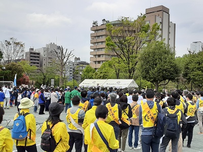 「WE LOVE めぐろ」は、「ふるさと目黒をもっと美しく!もっと歩こう!もっと知ろう!」をスローガンに、参加者がゴミ拾いをしながらゴールの中目黒公園を目指す、街の魅力を再発見する清掃活動です。目黒法人会や区役所等の行政機関をはじめ、目黒区内の企業や町会、少年サッカークラブの方々が参加されました。