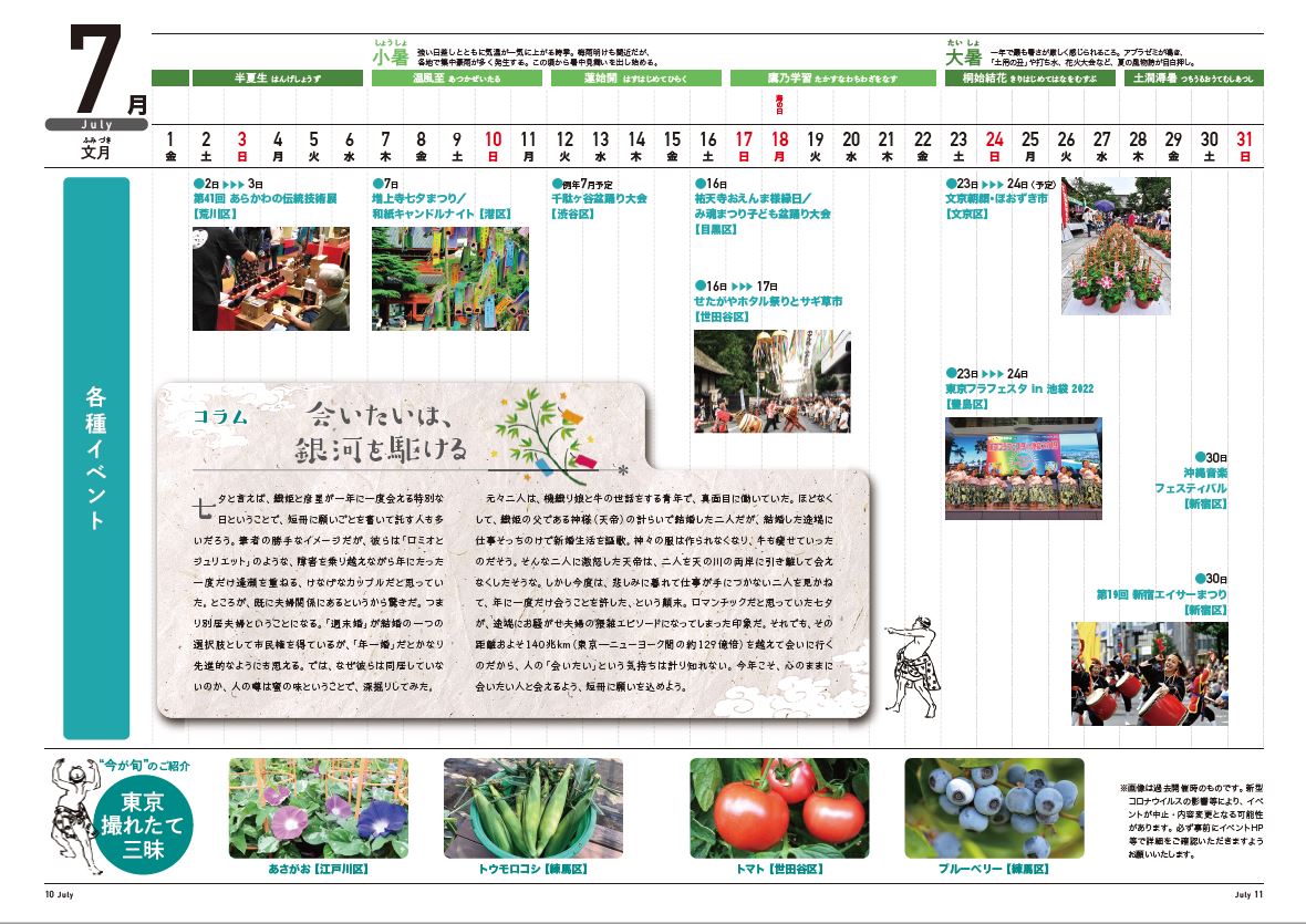 今回は「東京で涼を感じる」をテーマに6~8月を特集。東京23区の観光協会・区役所協力のもと、数多くのイベントや夏にこそ訪れたいスポット情報、旬の都内産作物などを掲載しています。