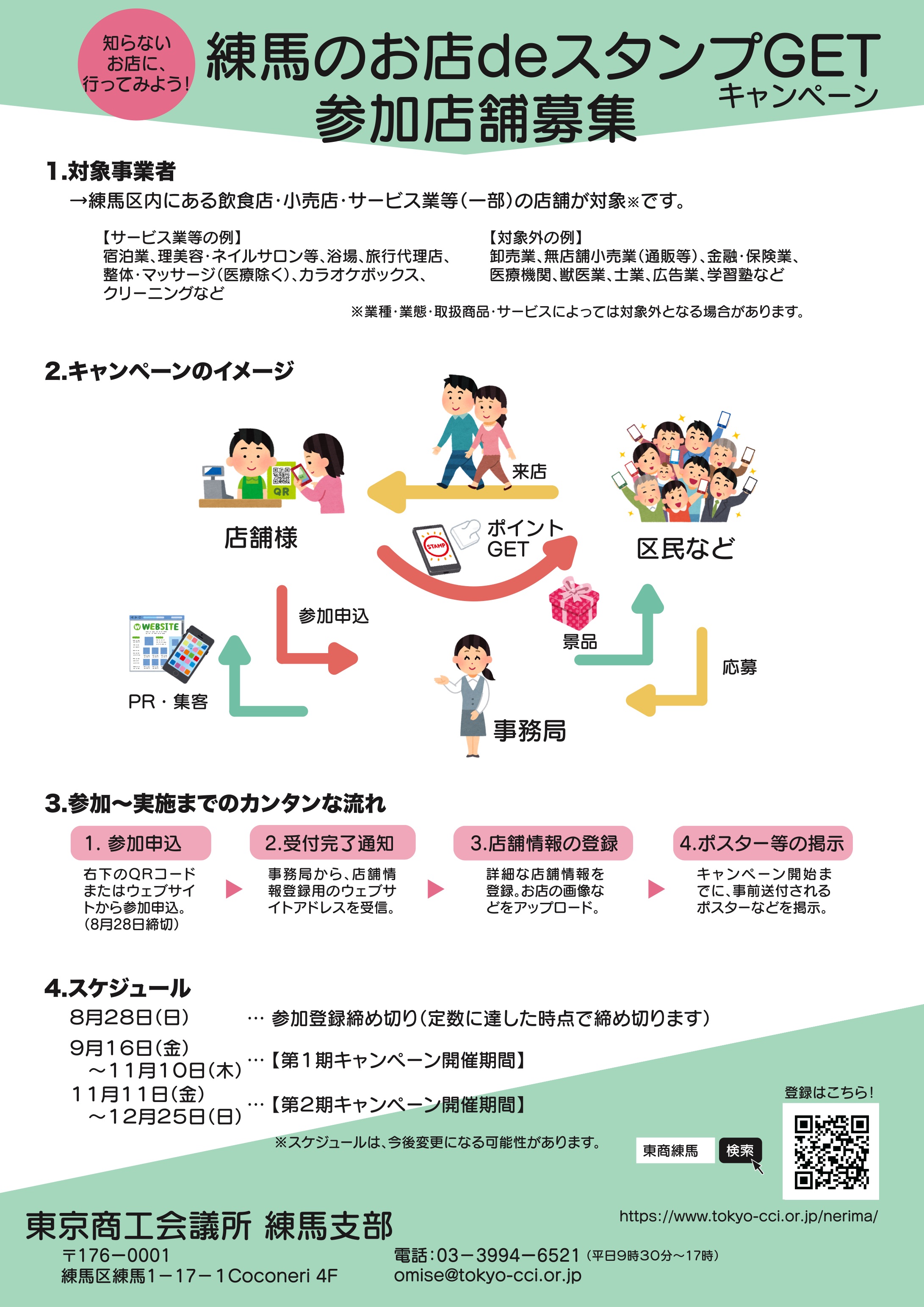 東京商工会議所練馬支部は、2022年9月から実施する「練馬のお店deスタンプGETキャンペーン」への参加店舗の募集を開始しました。