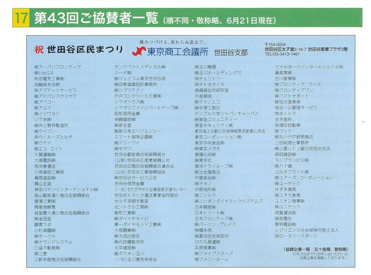 今年度も、以下の通り多くの世田谷支部会員企業の皆様に協賛金のご協力をいただきました。