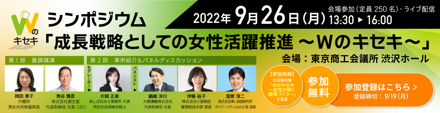 シンポジウム「成長戦略としての女性活躍推進ーWのキセキー」を開催します(9/26オンライン配信あり)