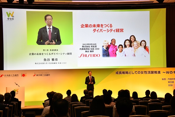 日本商工会議所ならびに東京商工会議所(ともに三村明夫会頭)は、9月26日(月)、シンポジウム「成長戦略としての女性活躍推進~Wのキセキ~」を渋沢ホールおよびオンラインで開催し、会場とオンラインの合計で600名を超える参加者が参加しました。