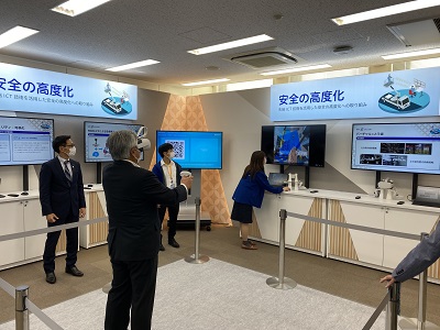 同施設では、ICT・AIの導入や、ドローン、再生エネルギーなどの活用により、今後わが国の産業や地域がどのように変わっていくのか、NTT東日本の担当者より説明を受けながら最新の技術などを視察しました。