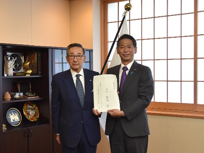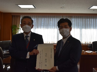 「地政学リスク、ウィズコロナ時代における中小企業の海外ビジネス促進に向けて【提言】」を山田外務副大臣および里見経済産業大臣政務官への手交