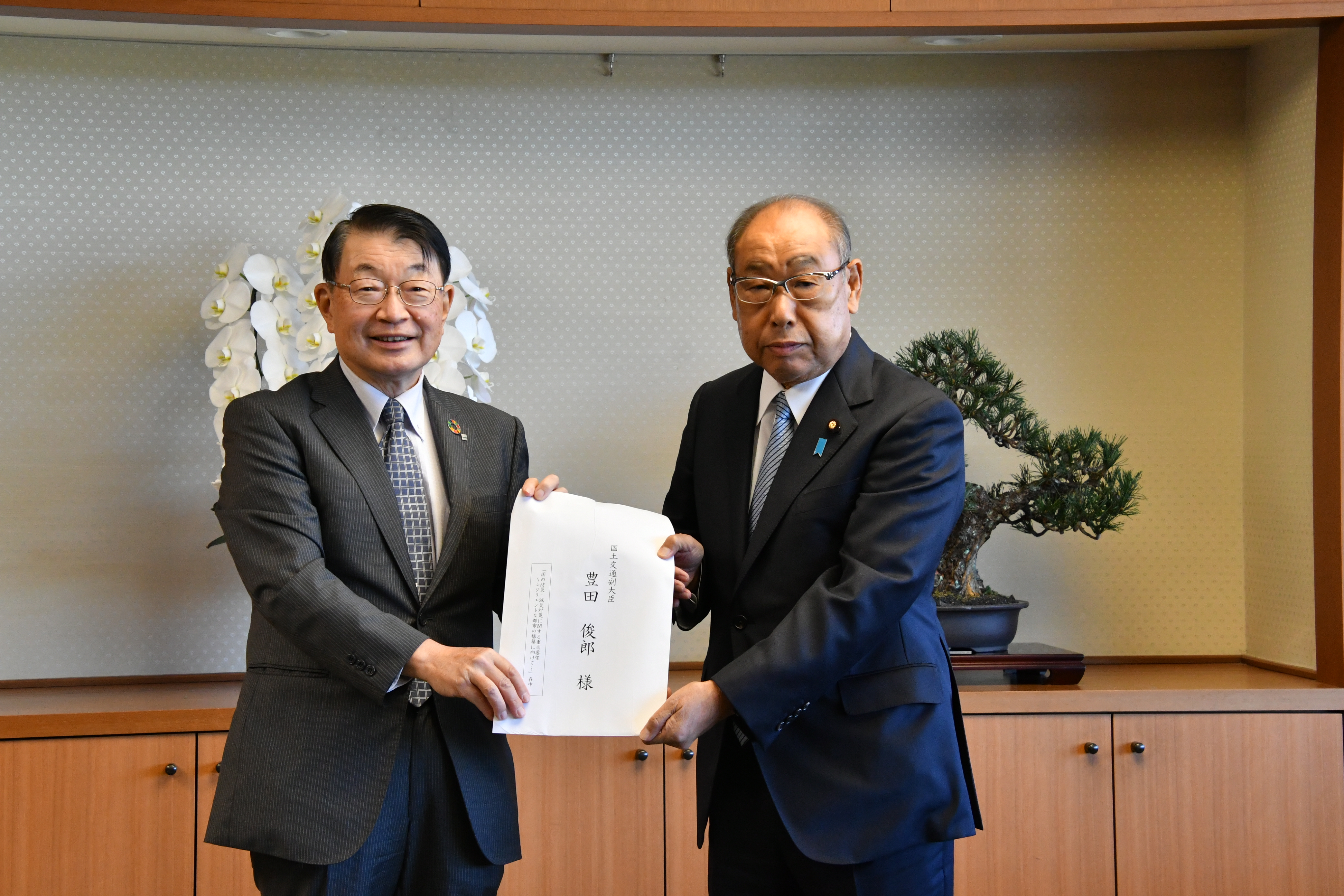 「国の防災・減災対策に関する重点要望」を豊田・国土交通副大臣に手交しました