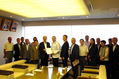 墨田支部(会長=阿部貴明・丸源飲料工業社長)は8月3日、「墨田区の中小企業・小規模事業者対策および観光・まちづくりの推進に関する要望」を山本 亨 区長と木内 清 区議会議長へ提出しました=写真。