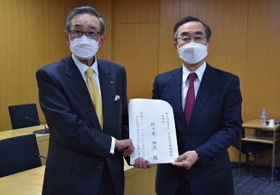 「地政学リスク、ウィズコロナ時代における中小企業の海外ビジネス促進に向けて【提言】」を(独)日本貿易振興機構佐々木理事長へ手交