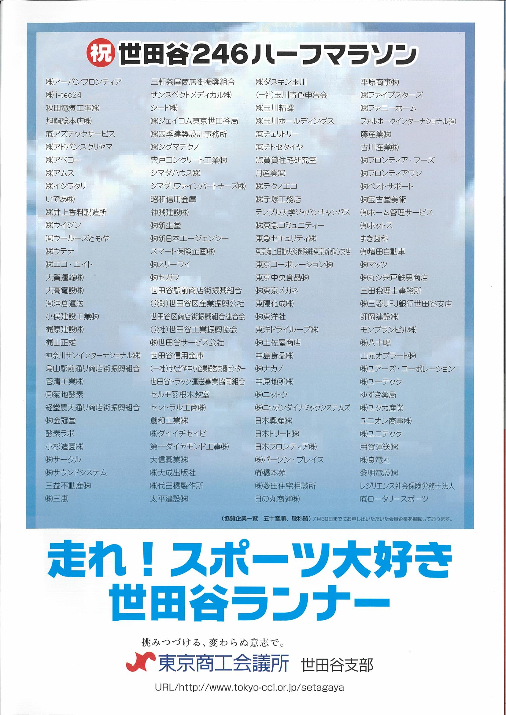 東京商工会議所世田谷支部では広く区民に親しまれている「世田谷246ハーフマラソン」に協賛、参画しております。