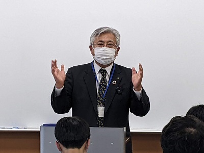 第2部では、越野北支部会長(越野建設社長)が、「投資を学ぶ意義と渋沢栄一の果たした役割」と題した講義を実施。越野会長は、渋沢翁が日本に株式会社を導入した経緯や道徳経済合一説の意義を説明した上で、「渋沢翁が説いた『と』の思想が、現代の日本におけるイノベーションの源泉になっている」と力強く語られました。