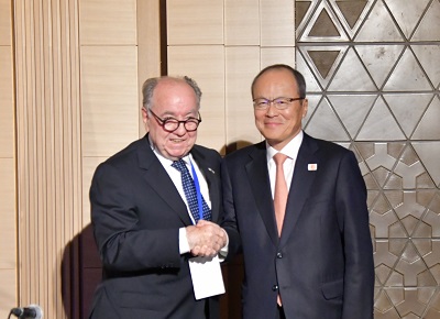 開会式では、垣内委員長とエラスリス委員長から開会の挨拶があり、エラスリス委員長より日本国内委員会の前委員長である小林会頭宛に記念品が贈呈されました。