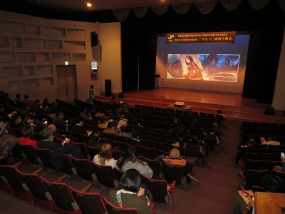 映画「少女H」は、徳島商工会議所青年部のメンバーが徳島の歴史をテーマにした町おこしを目的として作りあげたご当地映画で、女子高校生が徳島をめぐりながら隠された歴史を紐解いていくという、阿波古代史の魅力をふんだんに盛り込んだ冒険物語でした。上映前後には、飯泉嘉門徳島県知事、表原立磨阿南市長からの当事業に対し温かなビデオメッセージをいただきました。