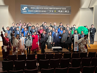 目黒支部青年部からは、小林幹事長以下10名が参加。目黒区内会員事業者や東京徳島県人会の方を含め多くのゲストにご来場いただき、総勢100名以上での開催となりました。また、上映会終了後には徳島商工会議所青年部との懇親会を開催し親睦を深めました。