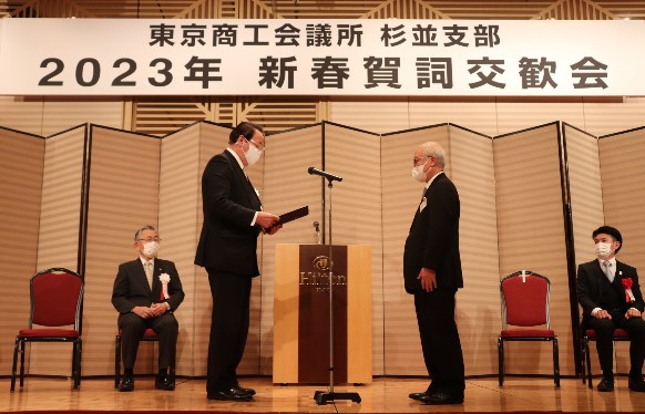 東京商工会議所杉並支部は1月16日、新春賀詞交歓会を3年ぶりに開催し、会場出席およびオンライン出席にて190名が参加いたしました。