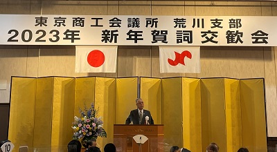 東京商工会議所荒川支部は2023年1月25日(水)、アートホテル日暮里ラングウッドにおいて、「新年賀詞交歓会」を開催しました。