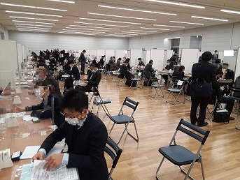 加えて参加企業を2つのグループに分け2時間5分ずつの完全入れ替え制にし、収容人数の半数以下に入場を制限する対策を講じました。