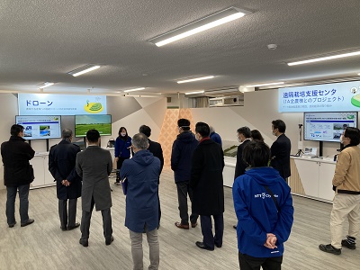 杉並支部サービス・情報産業分科会(分科会長=隈元裕・システムズ・デザイン株式会社社長)、商業分科会(分科会長=宇田川通宏・武蔵商事株式会社専務)は2月9日、共催で「NTTe-City Labo (NTT中央研修センタ) 見学会」を開催しました。当日は施設内の研究員から、地域循環型社会の実現に向けた様々な実証実験について、研究課程を踏まえながら説明があったほか、実際のローカル5Gを活用したスマートストアや農業支援に向けたドローンなどを見学しました。参加者からは「一昔前までは夢物語であった技術を実際に見学出来て、大変有意義だった」等の声がありました。