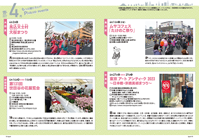 今号では「東京の春」をテーマに、東京23区の観光協会・区役所協力のもと、3~5月のイベント情報を中心に、四季を感じられる地域密着情報をお届けしています。