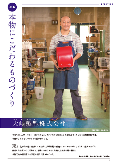 また、入学・入社シーズンにちなみ、ランドセルをはじめとした革製品づくりを行う職人にインタビューを実施。本物にこだわるものづくりの哲学を特集しています。