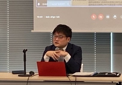 その後、資源エネルギー庁 長官官房総務課 戦略企画室 総括補佐 疋田 正彦 氏から、「GX実現に向けた基本方針について」と題してご講演いただき意見交換を行った。疋田氏からは、GX実行会議で議論されたエネルギーの安定供給確保や成長指向型カーボンプライシング等に係る内容についてご説明いただいた。