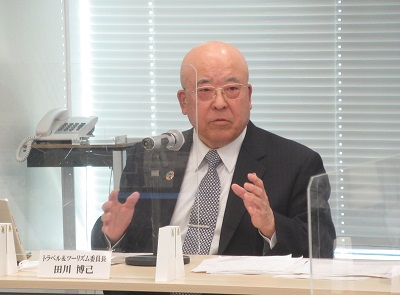 トラベル&ツーリズム委員会(委員長=田川副会頭・JTB相談役)は、4月4日、第1回トラベル&ツーリズム委員会をハイブリッド形式にて開催し、60名(会場出席50名、オンライン出席10名)が出席しました。