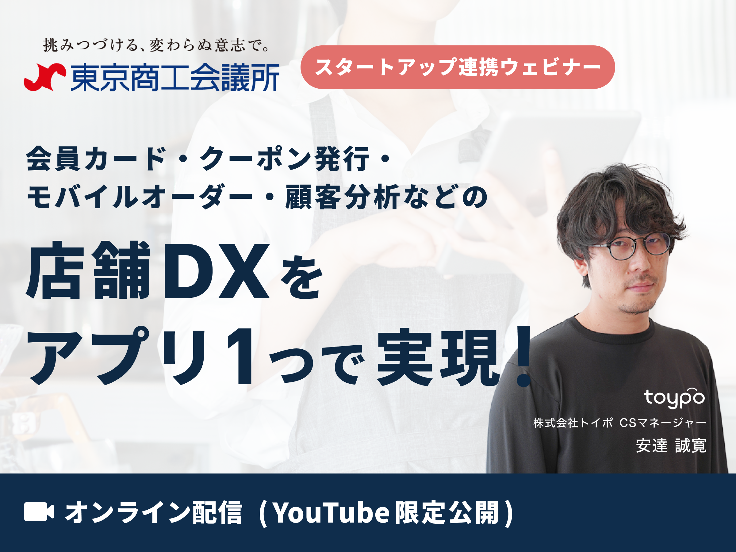 <東商×スタートアップ・トイポ連携ウェビナー>【店舗DX・事例解説】売上・利益最大化!効率的なリピーター獲得に向けたデジタル活用・販促施策セミナーを6月5日(月)より配信します