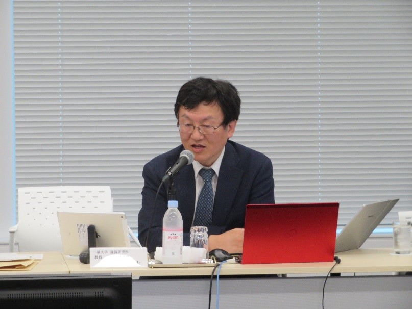 委員会では、冒頭、事務局から「政府における少子化対策の議論」について説明いたしました。続いて、一橋大学 経済研究所教授の小塩隆士(おしお たかし)氏から「人口減少にどう立ち向かうか」と題してご講演いただいた後、質疑応答・意見交換を行いました。